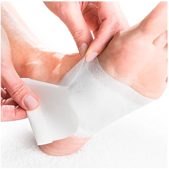 Place the patch at the middle of the foot. The soft side of the patch should contact the skin.